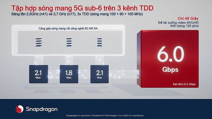 Tại sự kiện Hội nghị thượng đỉnh Qualcomm 5G Summit, Qualcomm cũng đã trình bày các tính năng khác của Snapdragon X70, chẳng hạn như hiệu suất 5G nâng cấp bởi AI và tổng hợp sóng mang 5G dưới 6 GHz trên ba kênh TDD (phát triển hướng kiểm thử) - mang lại tốc độ tải cao nhất lên đến 6 Gbps.
