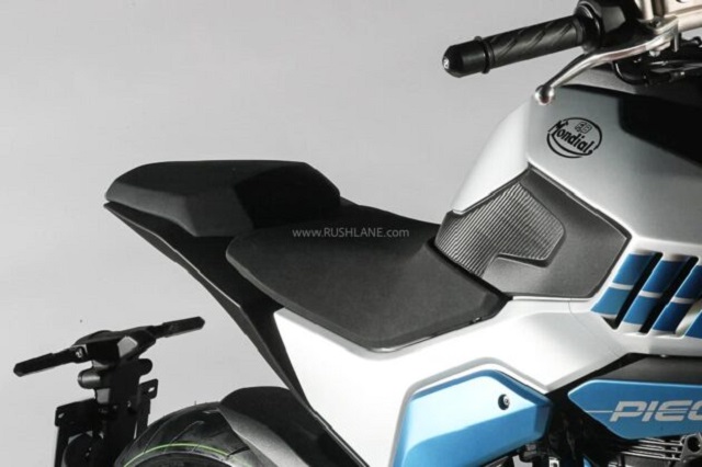 Đuôi xe nổi bật với đèn hậu, biển số và đèn báo gắn trên bộ ôm lốp. Những chi tiết này góp phần mang lại vẻ thẩm mỹ cho tổng thể chiếc xe. Tay lái của Piega 125 lấy cảm hứng từ phong cách đường phố. Ống xả dưới gầm và tay đòn có thiết kế trông tinh xảo.