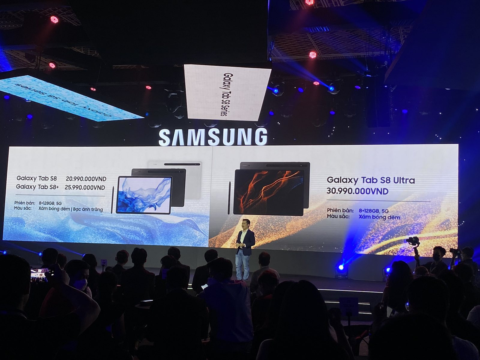 Galaxy Tab S8 Series chính thức lên kệ với mức giá bán lẻ đề nghị lần lượt là 20,990,000 đồng cho Galaxy Tab S8 và 25,990,000 đồng cho Tab S8+ và Galaxy Tab S8 Ultra là 30,990,000 đồng.