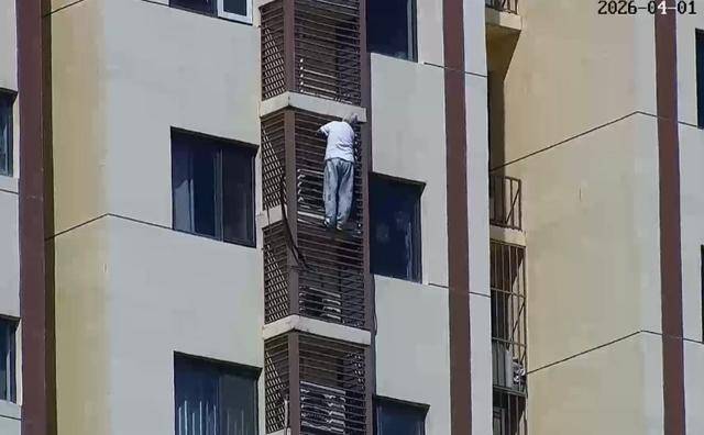 Theo CCTV, vào chiều ngày 1/4, bảo vệ của một khu dân cư phát hiện một cụ bà tóc bạc đang trèo trên lan can khu vực đặt cục nóng điều hòa ở tầng 26. Nhận thấy tình huống nguy hiểm, người này lập tức gọi điện báo lực lượng cứu hỏa.