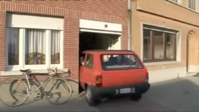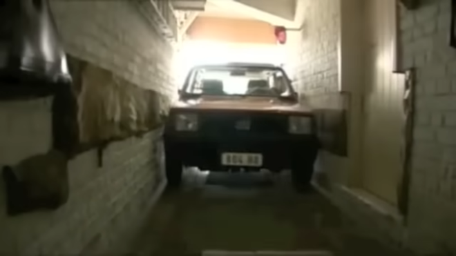 Từ trong xe, ông với tay mở cánh cửa bên hông nhà. Sau đó, ông lùi lại để có đủ chỗ mở cửa xe; ông tắt máy, ra khỏi xe và đẩy xe lên phía trước để đóng cửa xe và hoàn thành việc cất xe tưởng chừng bất khả thi này.