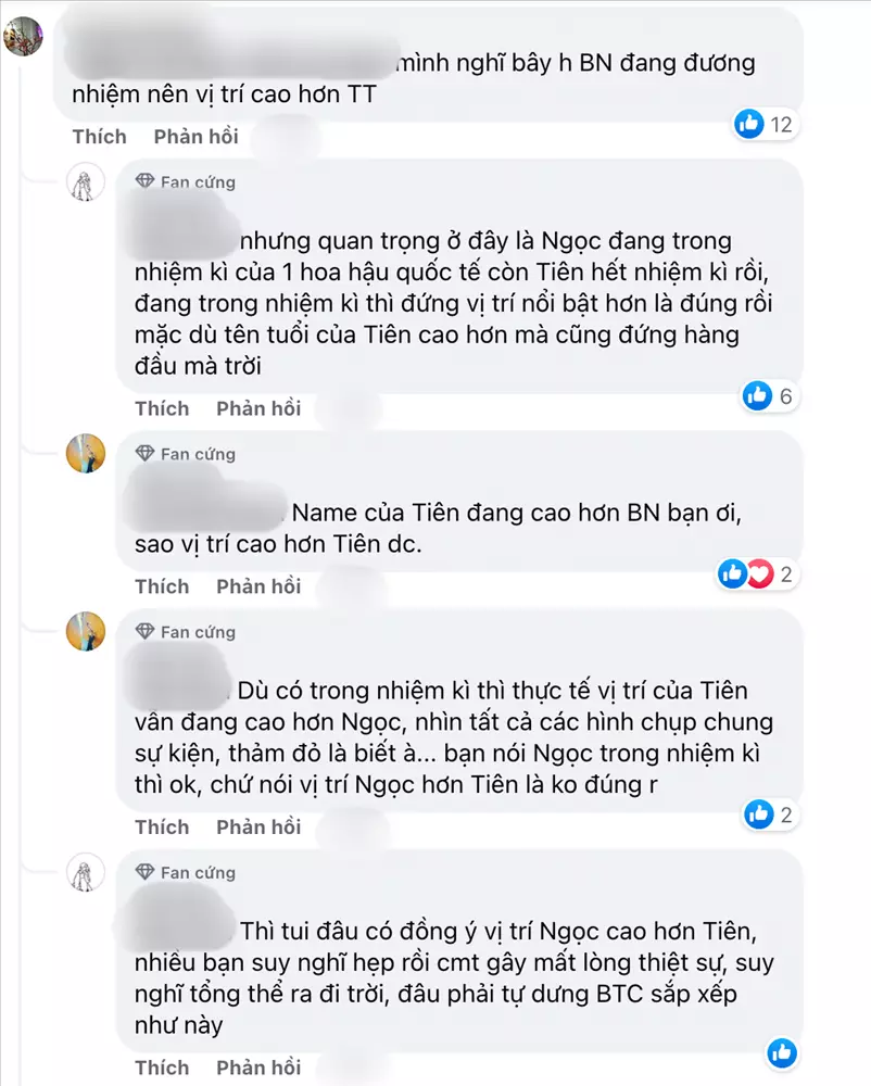Nhiều người cho rằng Bảo Ngọc xét về tuổi đời lẫn tuổi nghề đều thua kém Hà Kiều Anh và Thùy Tiên nên vị trí đứng này có phần hơi vô lý. Dù cho cô vừa đăng quang ngôi vị cao nhất tại cuộc thi quốc tế thì điều này cũng không hợp lý. Bên cạnh đó, số khác lại cho rằng Hà Kiều Anh là Hoa hậu cấp quốc gia, Thùy Tiên và Bảo Ngọc cùng cấp quốc tế nhưng Thùy Tiên đã hết nhiệm kì trong khi Bảo Ngọc đang đương nhiệm. Bởi vậy, để cô nàng đứng giữa cũng là điều dễ hiểu.