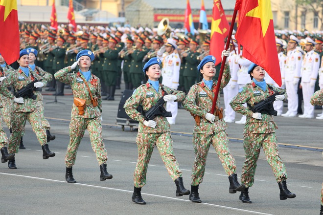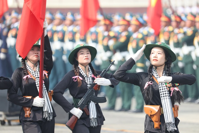Các khối nữ diễu binh không chỉ thu hút bởi vẻ đẹp duyên dáng, mà còn bởi phong thái trang nghiêm, tinh thần kỷ luật và sự đồng đều trong từng bước chân – vừa mềm mại, vừa mạnh mẽ, thể hiện hình ảnh người phụ nữ quân nhân thời hiện đại: thanh lịch nhưng đầy bản lĩnh.