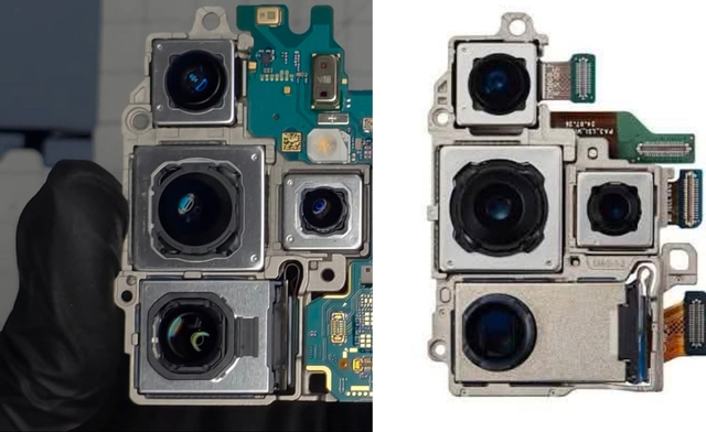 Khác biệt giữa cụm ống kính tele của S26 Ultra (trái) và S25 Ultra (phải). Có thể thấy thiết kế ALoP đã giúp giảm kích thước camera đáng kể so với trước.