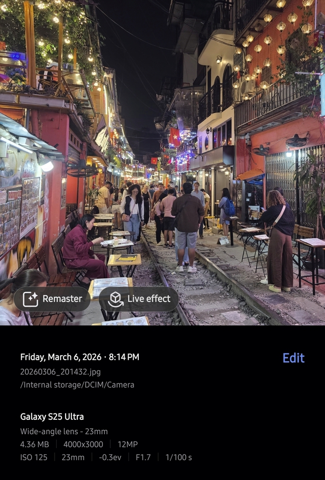 Ảnh chụp từ camera này cho cảm giác sạch hơn đáng kể. Nhiễu hạt giảm rõ rệt và các chi tiết nhỏ được xử lý mịn hơn so với S25 Ultra. Nhờ khẩu độ lớn f/2.9, máy có thể hạ ISO xuống thấp hơn nhiều, từ đó giữ được màu sắc chính xác và độ chi tiết tốt hơn. Phần mềm và AI cũng không phải "oằn mình" ra xử lý xóa nhiễu hay tái tạo chi tiết nhiều như trước nữa.