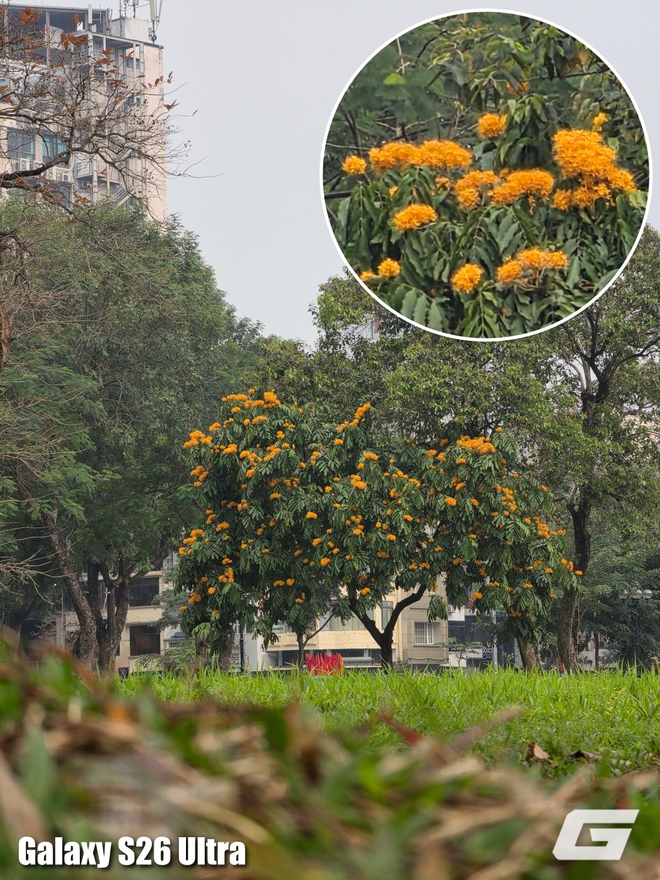 Tông màu của ảnh zoom 5x trên S26 Ultra trầm hơn một chút, đặc biệt là ở các vùng bóng và vùng tối. Điểm dễ nhận ra nhất là hiệu ứng bokeh. Nhờ hệ thấu kính tròn mới, các vùng xóa phông tạo thành vòng tròn hoặc oval mềm mại, thay vì hình chữ nhật đặc trưng của các camera tiềm vọng trước đây.