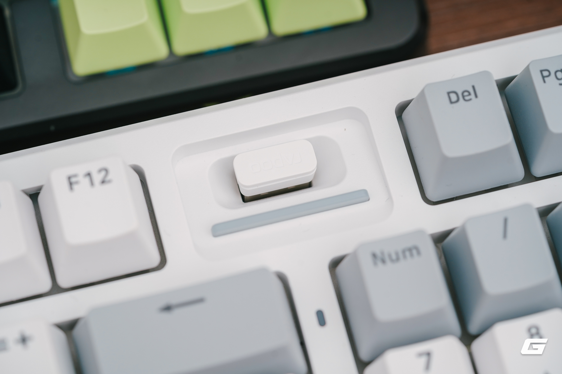 Switch Fast Silver của Rapoo (có gốc Kailh), linear, nhẹ và kích hoạt sớm. Là người cũng từng trải nghiệm nhiều bàn phím cơ custom, tôi thường dễ "soi" ra điểm yếu của những switch rẻ, nhưng lần này tôi phải công nhận Rapoo làm khá tốt.