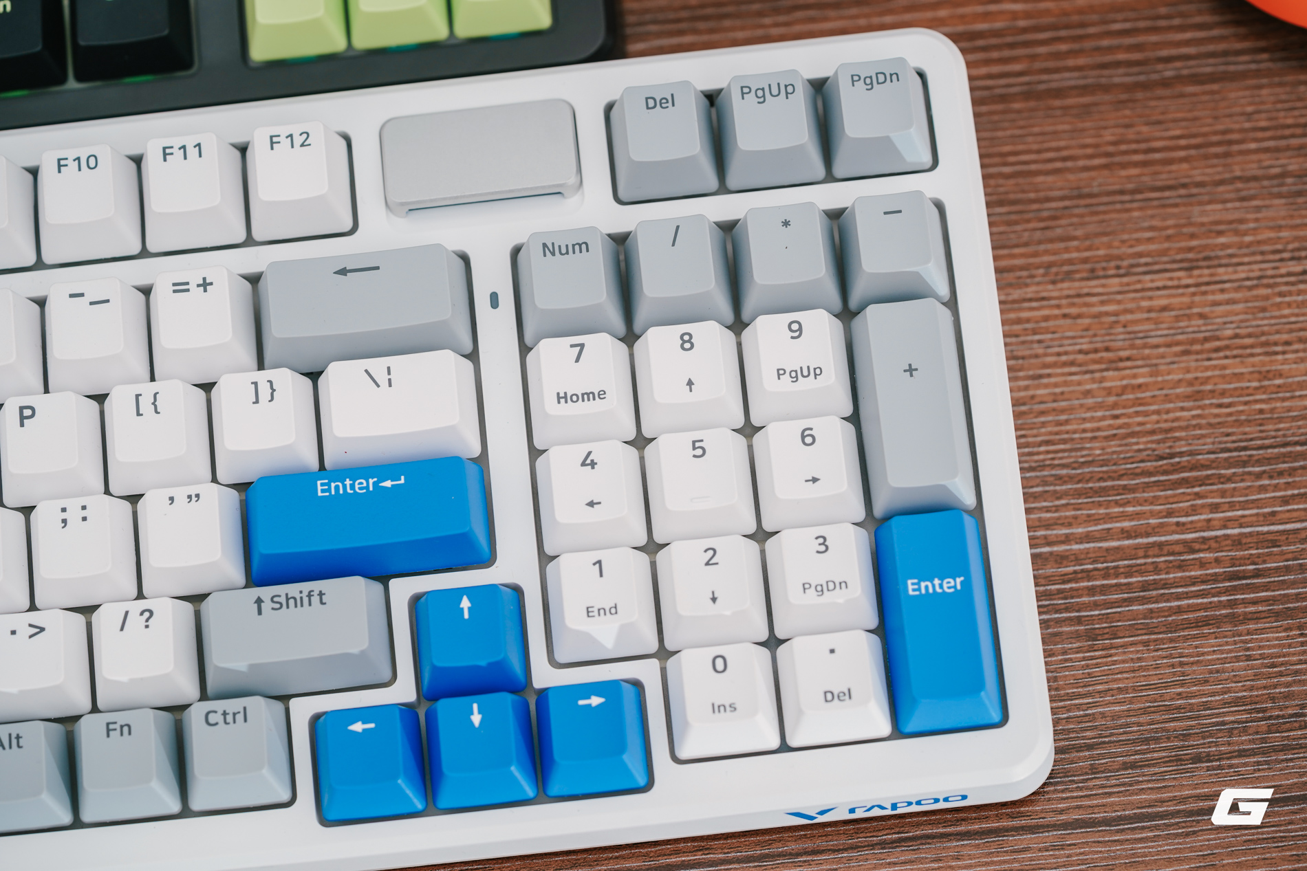 Điều tôi thích nhất là cách Rapoo kết hợp màu sắc và thiết kế: không khoa trương, không quá gaming, mà mang sự trung tính đủ đẹp để đặt trong mọi không gian làm việc. Kết cấu dày dặn, phần thân nhiều lớp không hề tạo cảm giác "rỗng", điều mà tôi gặp khá nhiều ở bàn phím phổ thông.