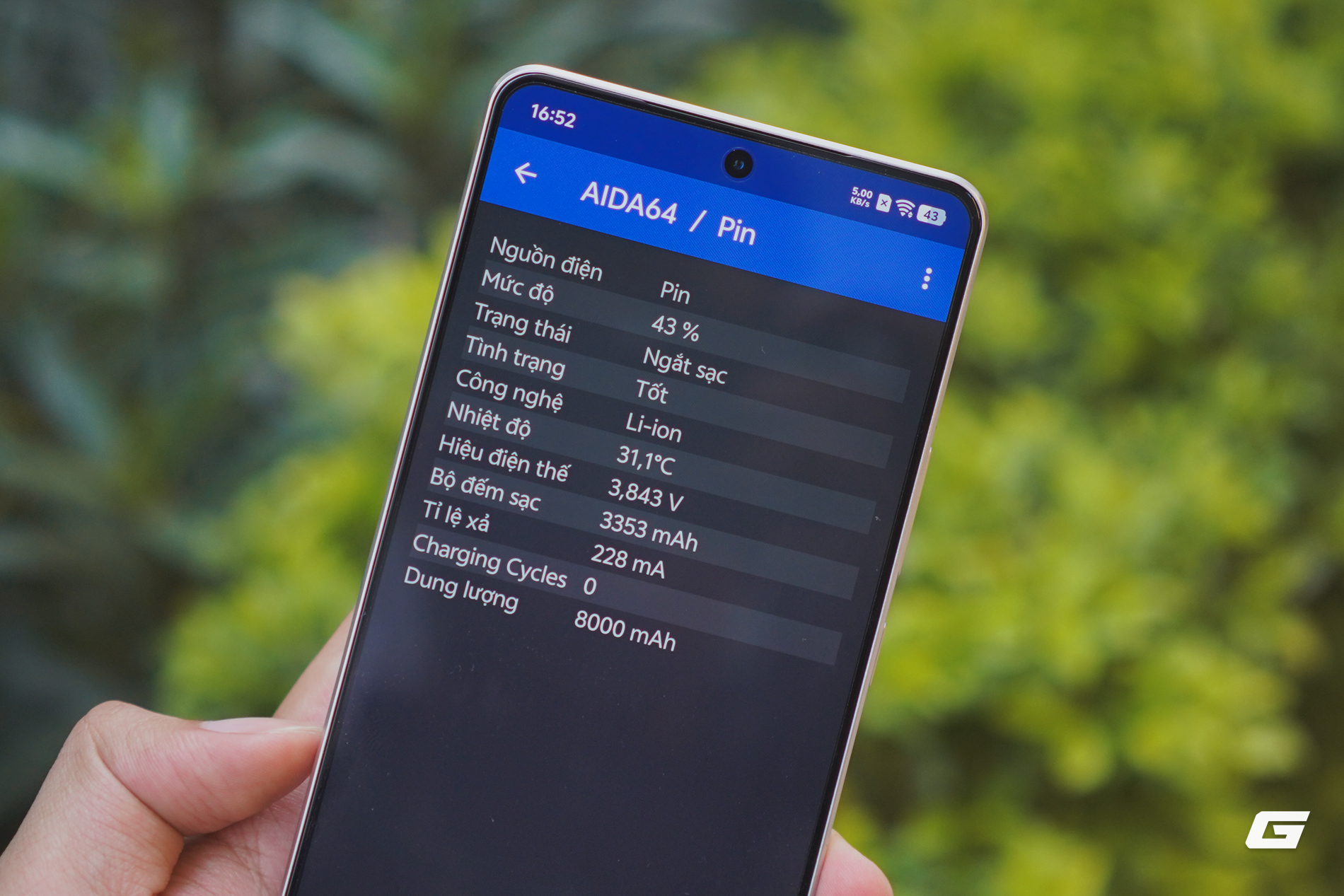 Về pin, đây cũng là một ưu điểm đáng tiền của iQOO Z10 Turbo+ khi được trang bị viên pin dung lượng lên tới 8.000mAh, một dung lượng có thể coi là rất lớn kể cả ở thời điểm hiện tại khi công nghệ silicon-carbon đang phổ biến. Dung lượng pin lớn giúp game thủ chơi game liên tục trong thời gian dài mà chưa cần phải sạc lại