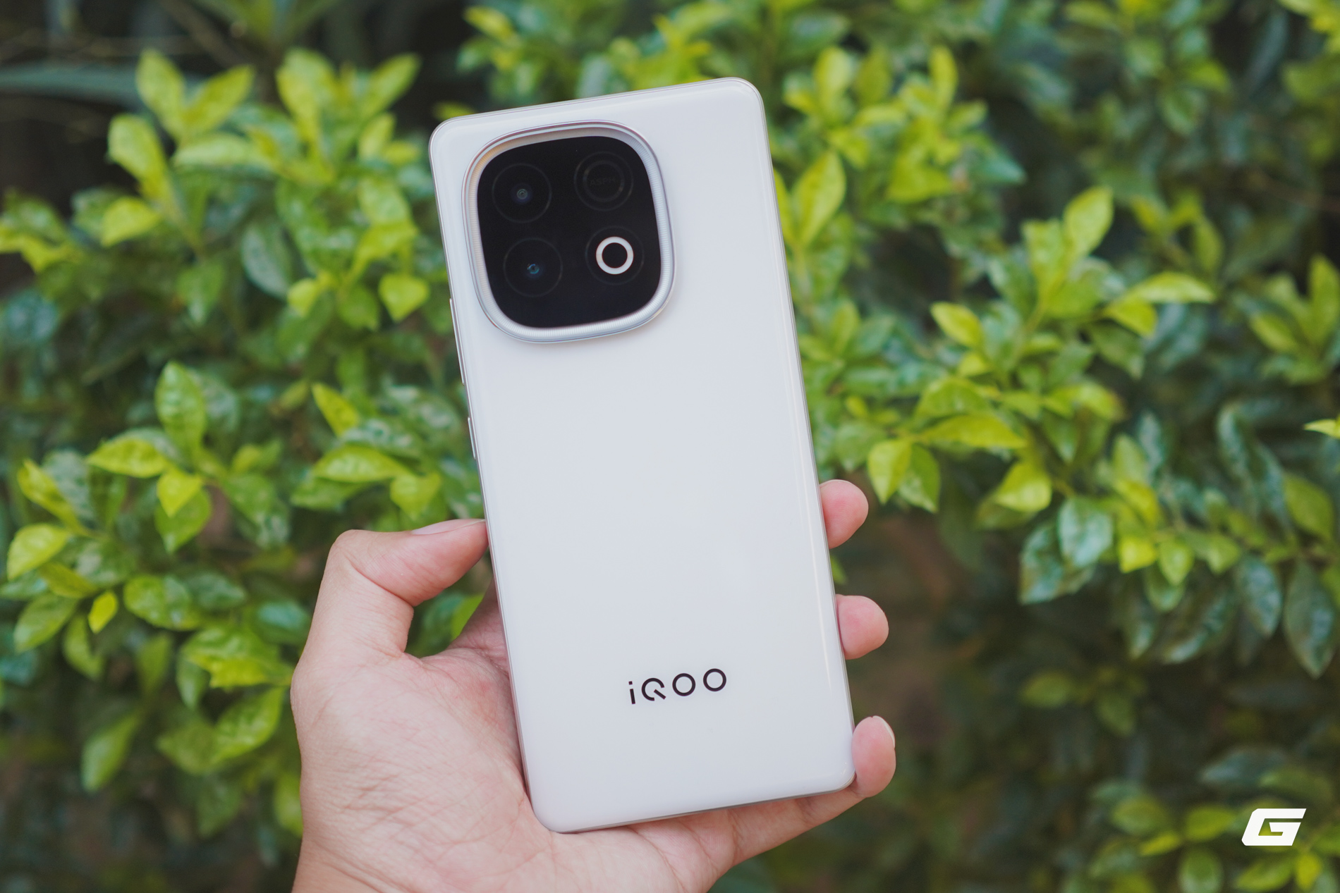 iQOO Z10 Turbo+ có thiết kế về cơ bản là giống với các model Z10 khác, dùng một ngôn ngữ khá dễ nhận diện và không quá hầm hố dù là dòng sản phẩm được đầu tư về mặt cấu hình cho các game thủ. Máy có mặt lưng hoàn thiện từ kính và khung viền nhựa, thiết kế phần rìa hơi cong một chút cho cảm giác cầm nắm thoải mái, đặc biệt là khi chơi game trong thời gian dài. Phiên bản chúng tôi đang có là phiên bản màu trắng đẹp mắt, ngoài ra máy có thêm màu đen, và vàng gold