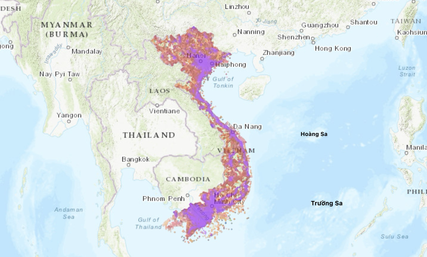 Bản đồ phủ sóng 5G của nhà mạng Viettel tính tới giai đoạn đầu năm 2026 - Ảnh: nperf
