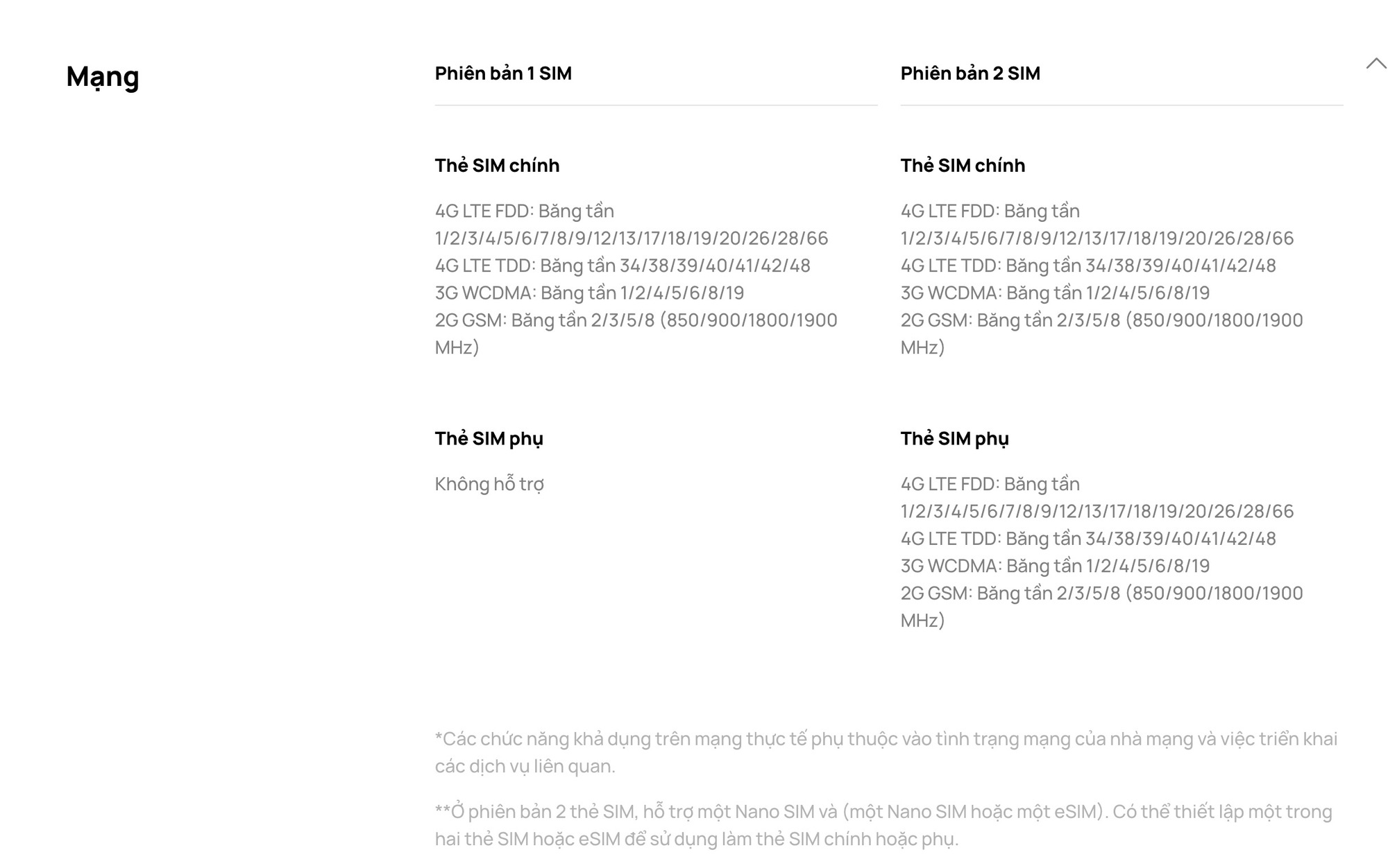 Trang web chính thức của Huawei cho biết máy chỉ hỗ trợ tới mạng 4G - Ảnh chụp màn hình