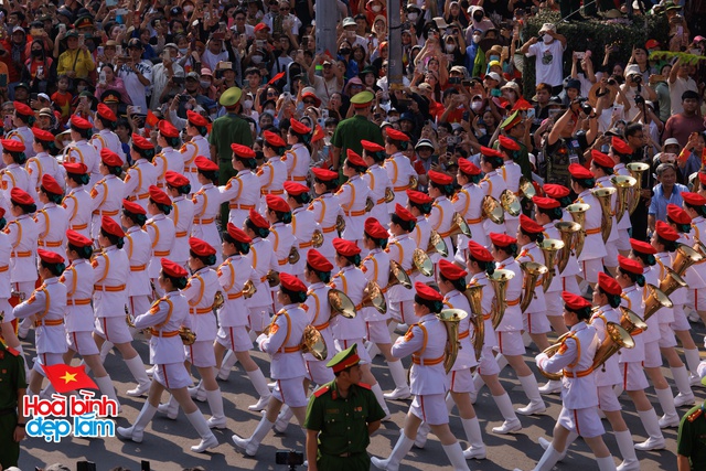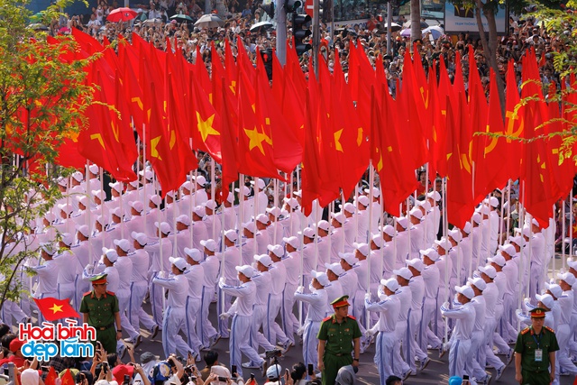8h30, 56 khối lực lượng bao gồm Quân đội, Công an, dân sự cùng các khối đại diện quần chúng nhân dân cùng nhau tiến bước qua các tuyến phố trung tâm TP.HCM, phô diễn sức mạnh quân sự cũng như sức mạnh đại đoàn kết của toàn dân tộc.
