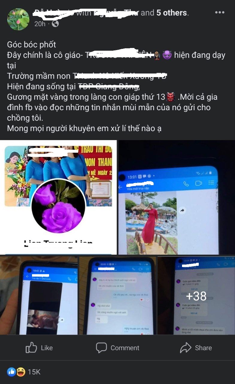 Theo như tố cáo, danh tính của tiểu tam là cô giáo T.T.L., hiện đang dạy tại một Trường mầm non thuộc huyện K.X, tỉnh T.B.