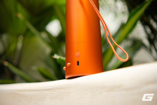 Kích thước loa là 216 x 82 x 59mm, nặng 740g, có phần hơi nặng nhưng vẫn vừa đủ để cầm tay hoặc bỏ ba lô mang theo khi du lịch. Vỏ nhôm ngoài cao cấp ra còn giúp hạn chế rung cộng hưởng, cho âm thanh sạch và "chuẩn" hơn. Loa hiện có 7 tùy chọn màu gồm Silver Dusk, Amber Haze, Orange Moon, Blue Aura, Moss Green, Cocoa Brown và Midnight Black, tích hợp dây đeo vải chắc chắn. Chuẩn chống nước IP67 là điểm cải tiến rõ ràng so với thế hệ đầu, cho phép loa ngập trong nước đến 1 mét nước trong 30 phút mà không lo hỏng hóc.
