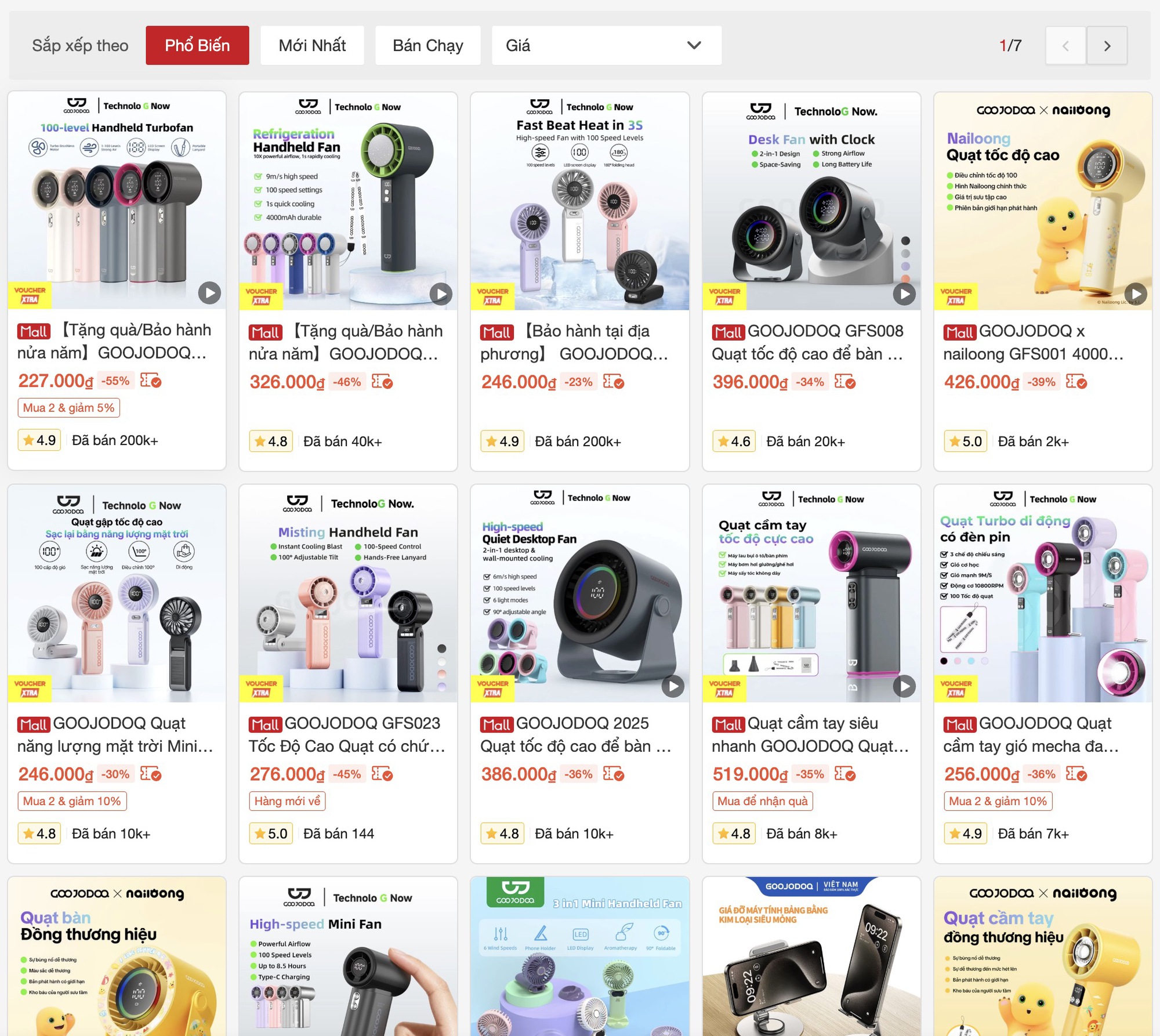 Gian hàng chính hãng của GOOJODOQ trên Shopee Mall có đa dạng sản phẩm, nhưng bán chạy nhất chắc chắn là quạt cầm tay rồi