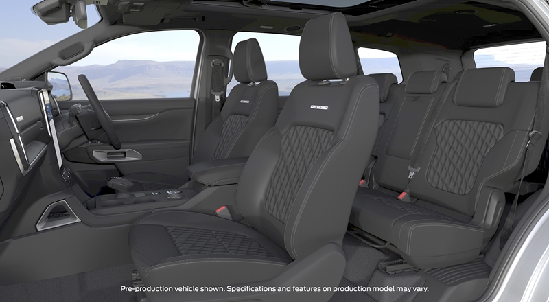 Nội thất Ford Everest Platinum V6 vốn lấy từ bản cao cấp nhất nên không thiếu trang bị. Dù vậy cabin cũng nhiều yếu tố mới như đèn nền đa vùng hay loa Bang & Olufsen được bổ sung thêm. Ảnh: Ford
