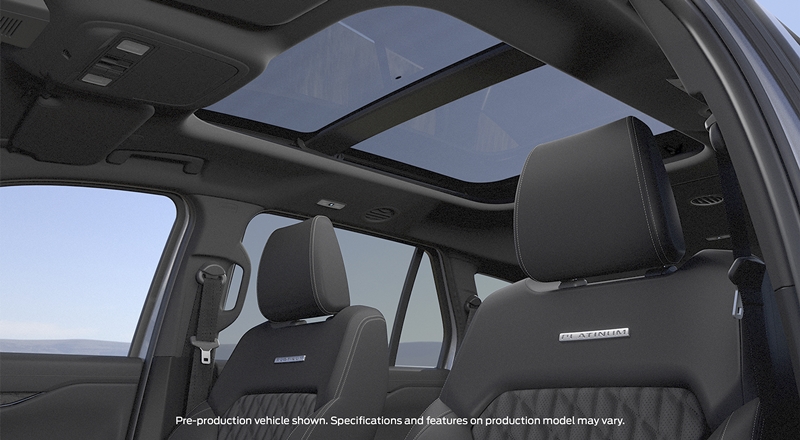 Một số khác biệt đáng chú ý khác trên Ford Everest Platinum V6 là tản nhiệt trước với giao diện độc quyền, logo có dòng chữ PLATINUM khổ lớn, mâm hợp kim 21 inch mới và lốp dự phòng 275/45 R21 phía sau. Khá đáng chú ý là bản này không có cửa sổ trời toàn cảnh mà dùng trần tối màu mặc định (người dùng phải chọn cửa sổ trời toàn cảnh như trang bị ngoài).