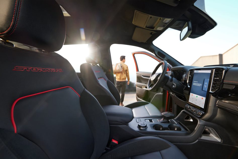 Ford Ranger Stormtrak sở hữu đầy đủ các công nghệ tiện nghi cao cấp nhất của dòng xe bao gồm ghế chỉnh điện 8 hướng, cụm cần số điện tử, màn hình điện tử sau vô lăng 12,4 inch, màn hình giải trí 12 inch kết nối Apple Carplay và Android Auto, dàn âm thanh 6 loa, sạc không dây, nhiều cổng USB, ổ cắm điện 230V,...
