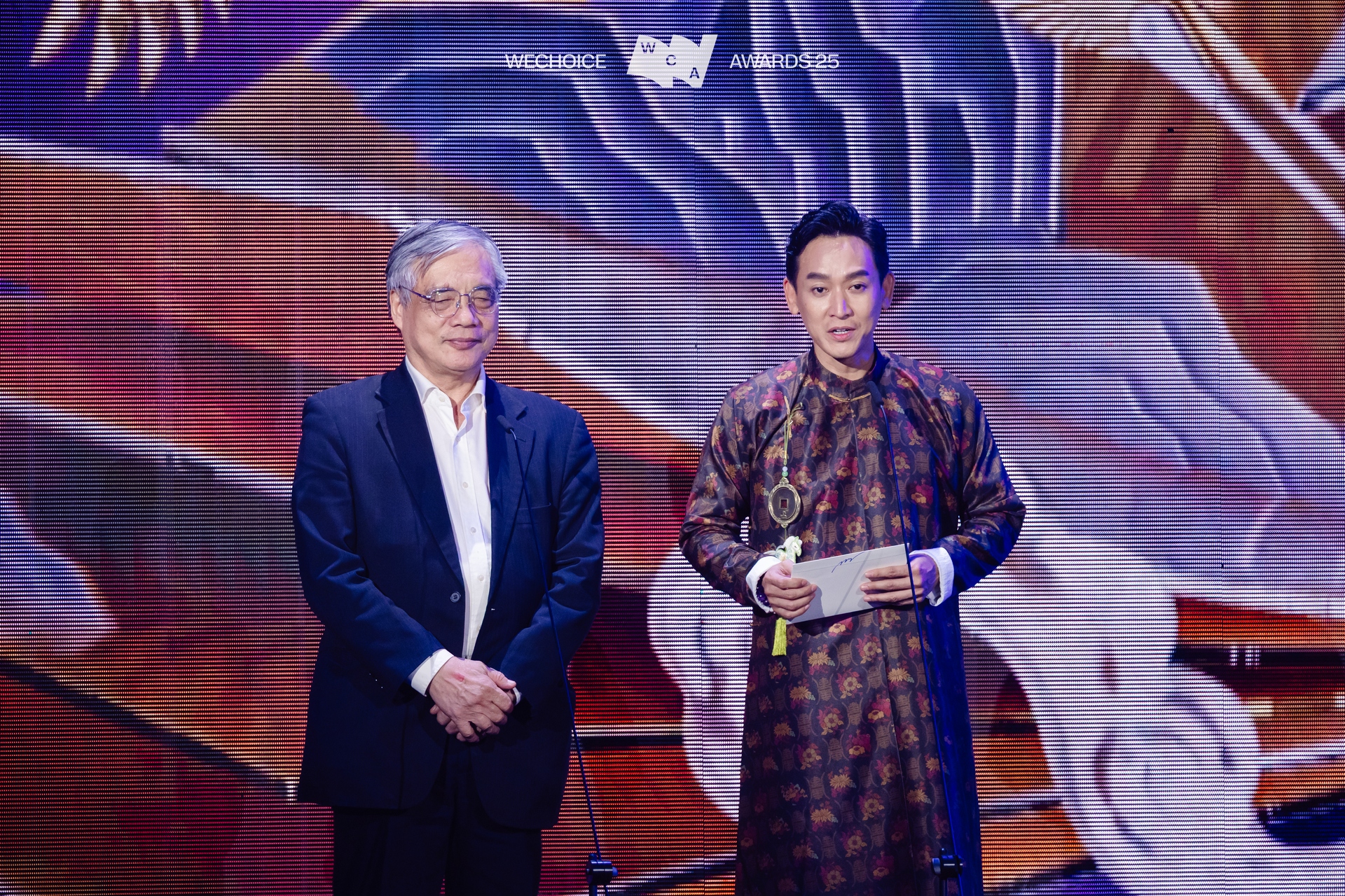 20h12: Bộ đôi MC giới thiệu đại biểu, các vị khách quý và thành viên HĐTĐ có mặt tại Gala WeChoice Awards 2025