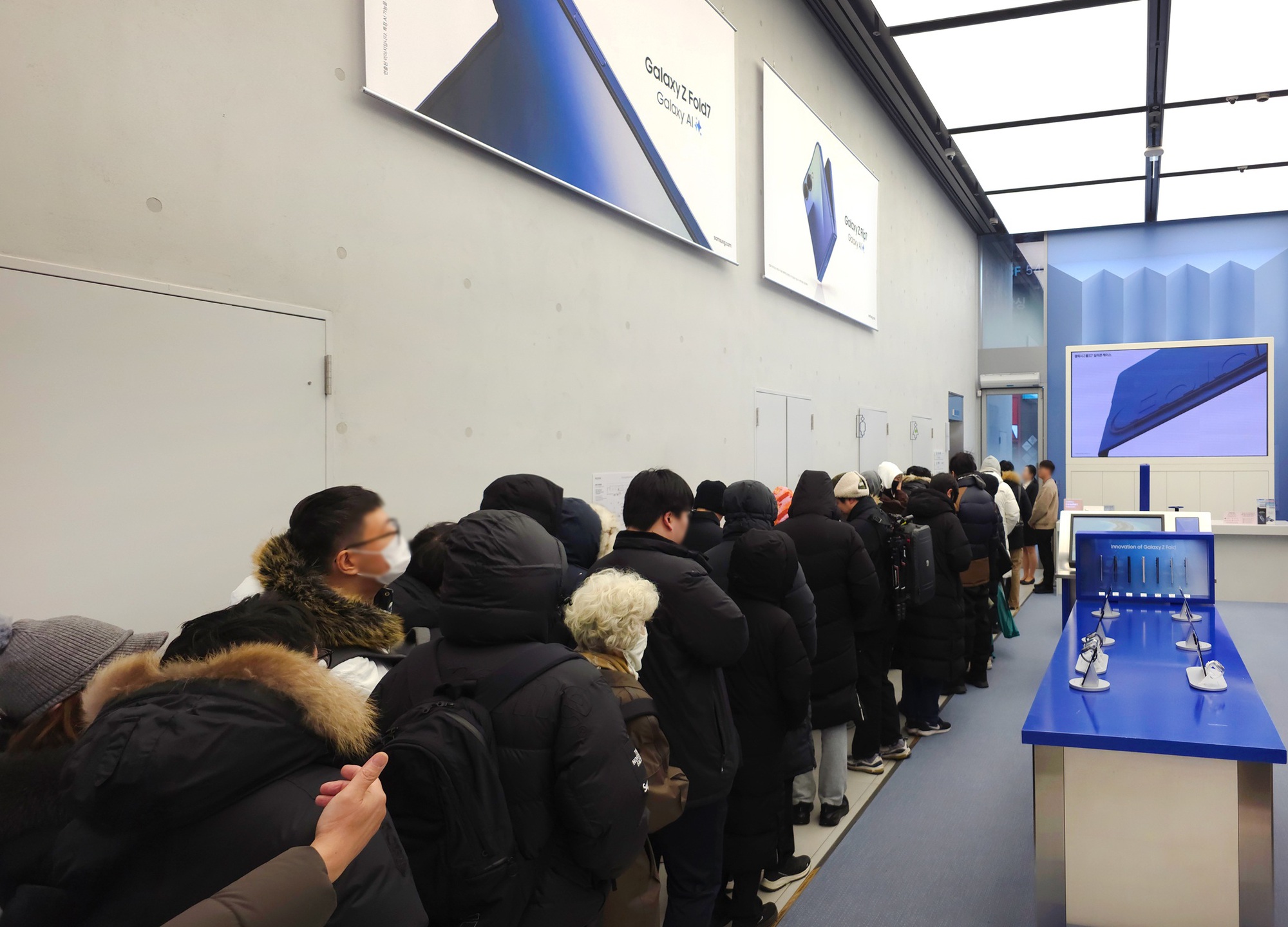 Hàng dài khách xếp hàng đi mua điện thoại gập 3 của Samsung - Ảnh: GSMArena