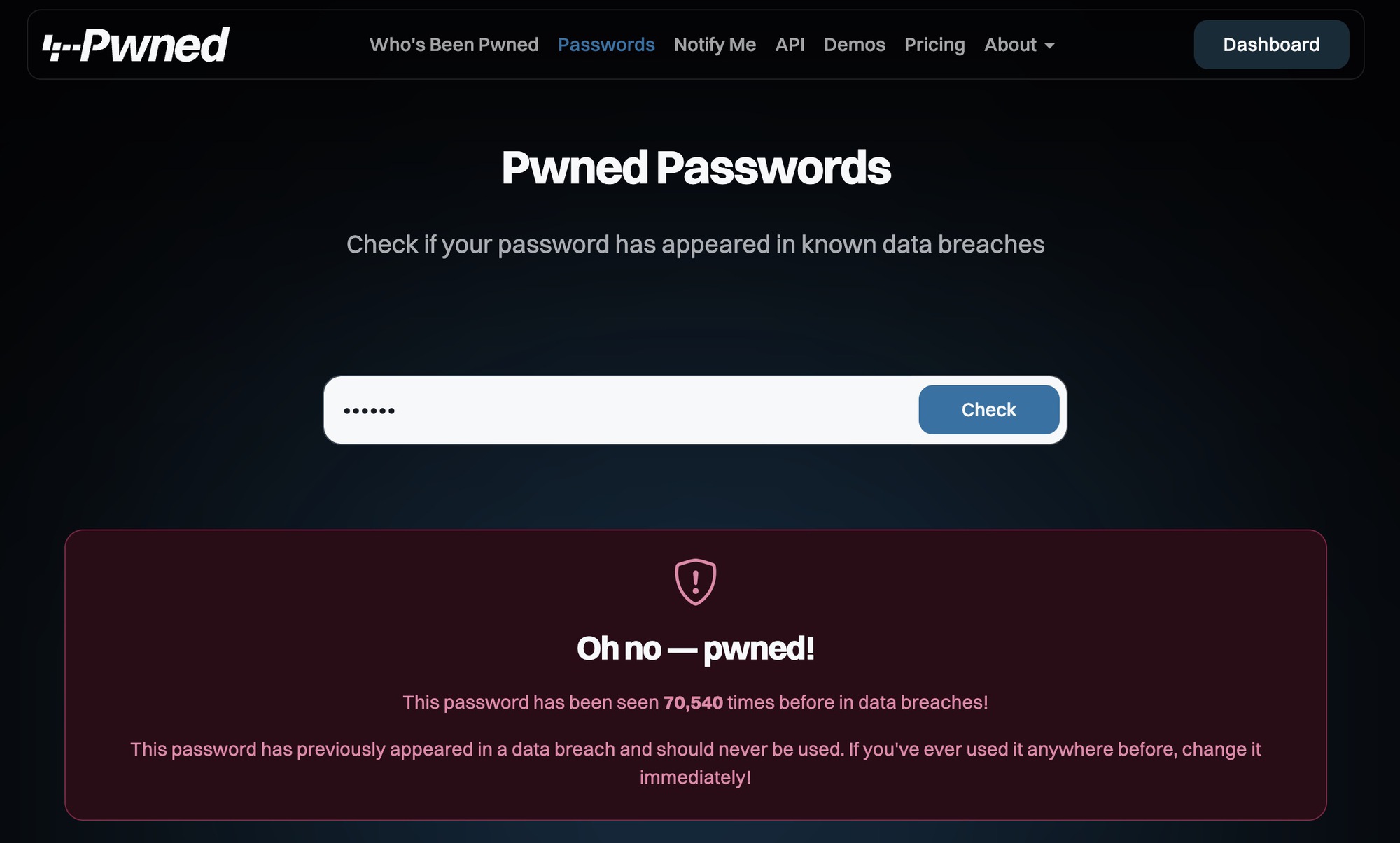 Hiện tại, người dùng có thể kiểm tra xem mật khẩu của mình có nằm trong kho dữ liệu bị rò rỉ hay không thông qua công cụ "Pwned Passwords" thuộc hệ sinh thái của HIBP. Công cụ này cho phép người dùng nhập mật khẩu trực tiếp trên trình duyệt, mà không gửi dữ liệu về máy chủ, đảm bảo quyền riêng tư. Tuy nhiên, nếu phát hiện mật khẩu đang sử dụng bị rò rỉ, người dùng cần thay đổi ngay lập tức.