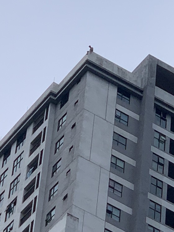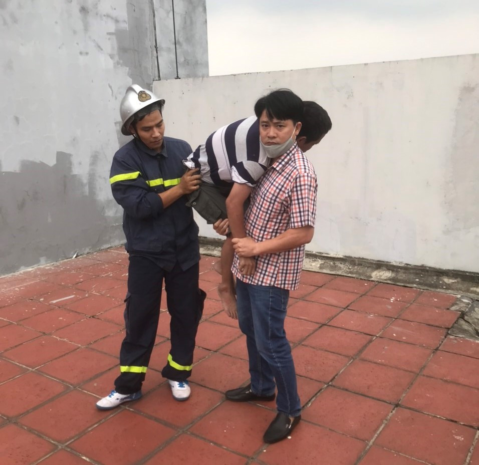 Ngay lập tức, lực lượng chức năng tổ chức triển khai đệm hơi tại khu vực phía dưới tòa nhà R2. Đồng thời, các chiến sĩ tiếp cận hiện trường tại tầng mái tòa nhà và phát hiện người đàn ông trên có biểu hiện tinh thần không ổn định (có thể đã sử dụng chất uống có cồn), liên tục la hét.