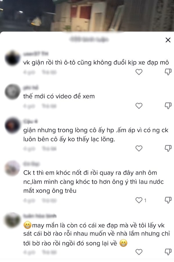 Không biết mâu thuẫn giữa cặp đôi căng thẳng thế nào nhưng câu chuyện trên sau khi chia sẻ đã nhận được rất nhiều sự thích thú của cộng đồng mạng. Ai nấy đều "dở khóc dở cười" trước hành động của ông chồng. Nhiều ý kiến cho rằng hành động soi đèn để vợ đạp xe 20km của anh như "đổ dầu vào lửa", chỉ khiến vợ càng tức giận hơn mà thôi.