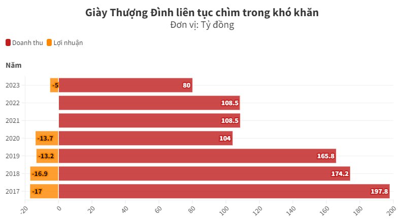 Về lợi nhuận, các năm 2017-2019, công ty lỗ 13-17 tỷ đồng. Hai năm chìm trong dịch COVID-19 là 2021-2022, giày Thượng Đình ghi nhận mức doanh thu như nhau, không lỗ. Gần đây nhất vào năm 2023, Giày Thượng Đình tiếp tục báo lỗ hơn 5 tỷ đồng.