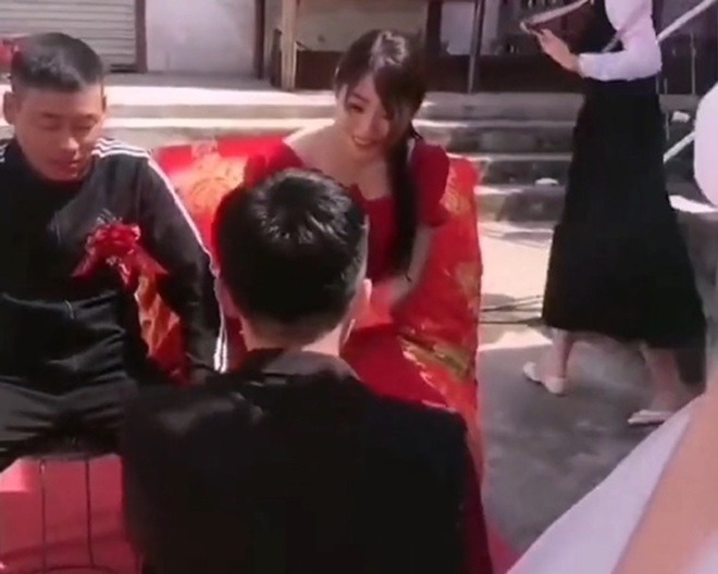 Tìm hiểu mới biết, bố mẹ của cô dâu đều còn rất trẻ. Trong khi bố vợ 40 tuổi thì mẹ vợ mới 32 tuổi. Vì nhà nghèo, người mẹ vợ đã phải nghỉ học sau khi tốt nghiệp cấp 2 để đi làm phụ giúp gia đình, không lâu sau đó thì kết hôn với người cùng làng, vì vậy cũng sinh con sớm hơn những người bạn cùng trang lứa. Sau này, con gái của họ cũng kết hôn sớm nên mới có cảnh tượng này. Nhìn mẹ vợ mặc chiếc váy đỏ xinh đẹp, bố vợ cũng cài hoa ngực áo, nếu ai không biết còn tưởng nhầm họ mới là cô dâu chú rể.