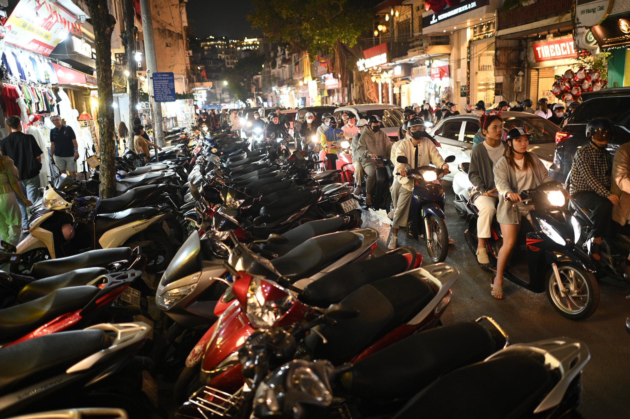 Tối 24/12, hàng nghìn người dân và du khách đổ về khu vực trung tâm thành phố để hòa mình vào không khí Giáng sinh. Từ khoảng 19h, nhiều tuyến phố và địa điểm quen thuộc như Nhà thờ Lớn, phố Hàng Mã… bắt đầu rơi vào tình trạng đông đúc, ùn ứ khi lượng người đổ về ngày càng tăng.