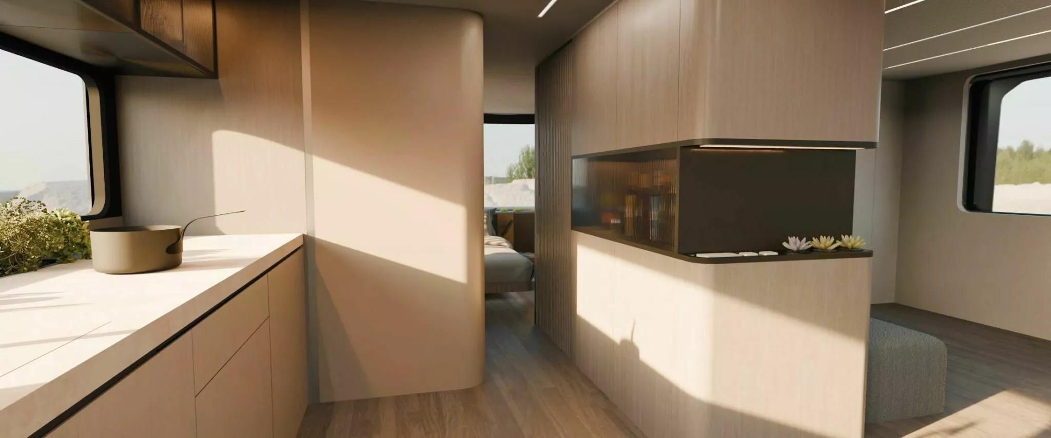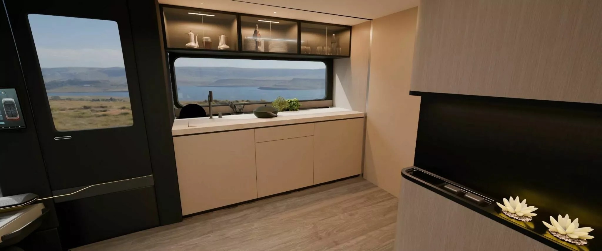 Nếu chỉ nhìn hình, khó có thể nhận ra không gian trong ảnh nằm trong một chiếc xe nhà kéo nhỏ nhắn. Ảnh: Pininfarina