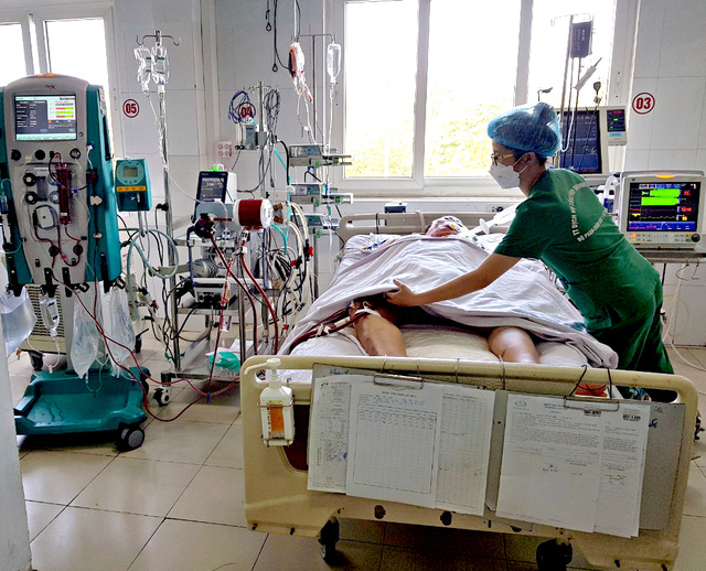 Điều trị tại Khoa Hồi sức Tích cực, Bệnh viện HNĐK Nghệ An, bệnh nhân đã được đặt nội khí quản, thở máy, kháng sinh, lọc máu liên tục, vận mạch trợ tim.