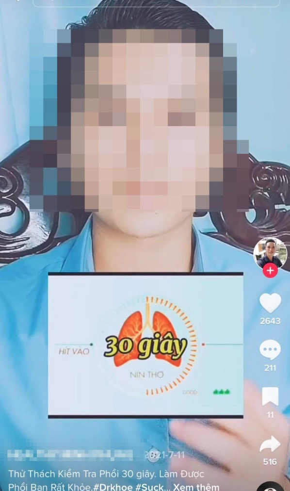 Theo Tuổi Trẻ, trên Tiktok, không ít tài khoản cá nhân trong trang phục áo blouse trắng cũng hướng dẫn người dân kiểm tra phổi khỏe bằng cách nín thở.