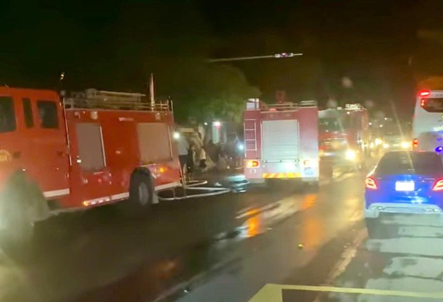 Xe chữa cháy đưa nạn nhân đi cấp cứu (Ảnh: VTC News).
