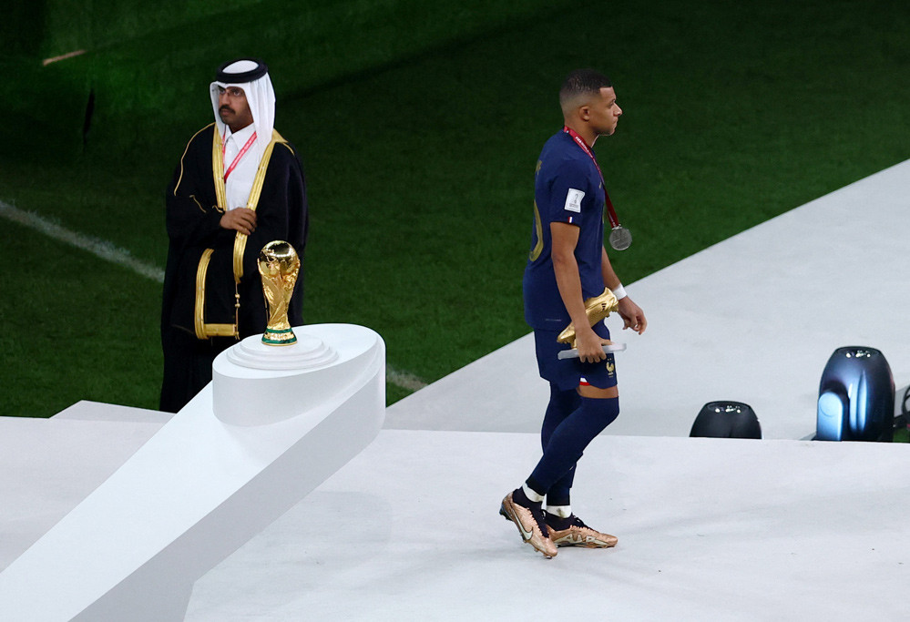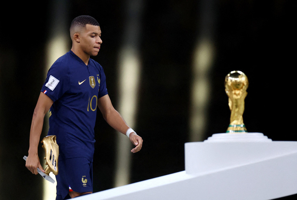 Buồn bã và trống rỗng, Kylian Mbappe ngồi thẫn thờ trên băng ghế kỹ thuật sau khi tuyển Pháp thất bại ở chung kết World Cup 2022.
