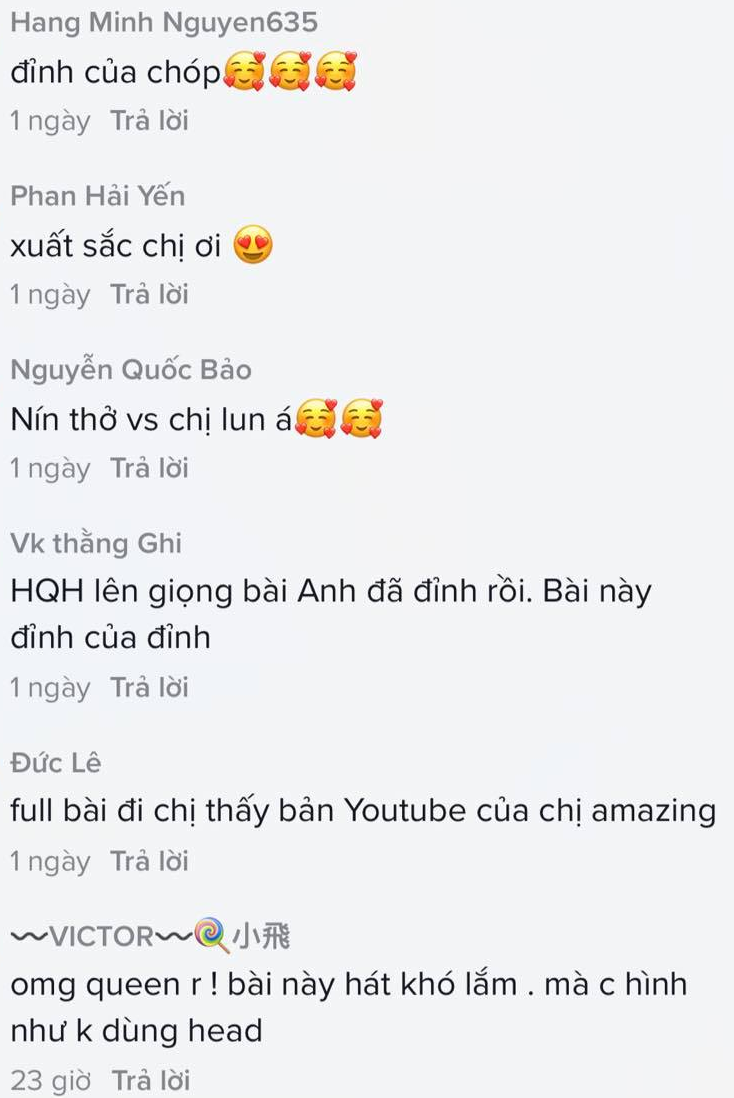 Đoạn clip sau khi đăng tải lên MXH đã thu hút hàng ngàn bình luận khen ngợi. Nhiều người thậm chí 'đòi' Hồ Quỳnh Hương nhanh chóng ra 'bản full' để nghe cho 'đã cái nư'.