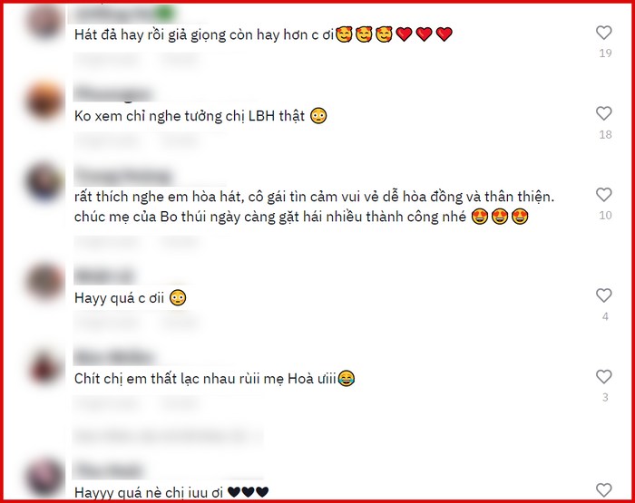 Không ít cư dân mạng đã để lại bình luận nể phục Hòa Minzy khi đã nghiên cứu rất kĩ giọng hát của Lương Bích Hữu để có thể "nhái" lại giống y hệt.