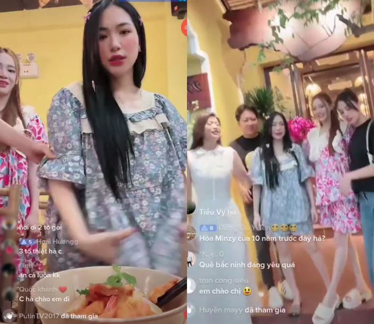 Trước dư luận ồn ào, Hòa Minzy đã livestream lên tiếng về vụ việc. Giọng ca 9X cho biết, cô mặc đồ đôi với Nhã Phương sau khi đàn chị rủ rê, đồng thời phủ nhận tin có thêm em bé. Sau đó, Trường Giang đã đi tới “bóc phốt” đàn em bị hiểu lầm vì ăn quá nhiều. “Ba tô mì Quảng, một chén tàu hũ, vậy mà nói không ăn nữa đâu”, nam danh hài cho biết. Trước lời nói của đàn anh, Hòa Minzy đã xấu hổ che mặt lại. Phản ứng của cô khiến khán giả bật cười thích thú.
