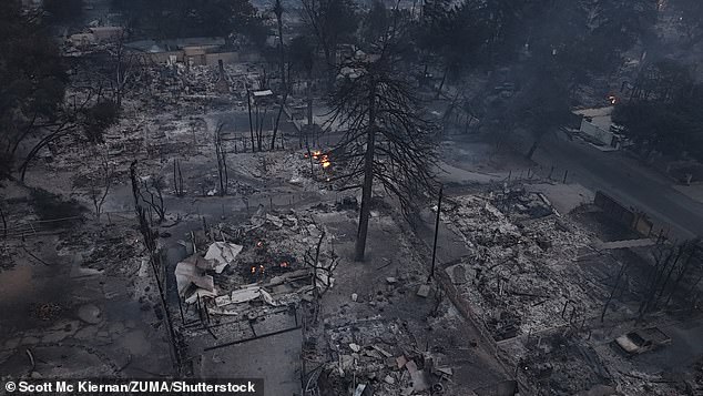Cảnh quay trên không cho thấy sự tàn phá ở Pacific Palisades - khu vực tập trung hàng loạt biệt thự của các gia đình giàu có hay các ngôi sao nổi tiếng hàng đầu thế giới. Một số người ước tính rằng có tới 75% căn nhà trong khu vực đã bị phá huỷ hoàn toàn