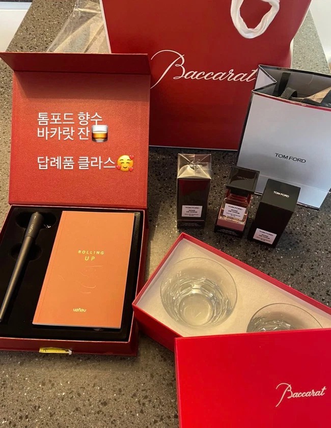 Bên cạnh đó, 1 khách mời cũng đăng tải lên MXH hình ảnh set quà mà vợ chồng Son Ye Jin - Hyun Bin gửi tặng tới những người đã tới tham dự và chúc mừng đám cưới của họ. Set quà này bao gồm nước hoa Tomford, máy nâng cơ mặt Vanav và cốc pha lê Baccarat. Đây đều là những sản phẩm tới từ những nhãn hàng đắt tiền và nổi tiếng trên thế giới, chứng tỏ độ chịu chi của Bin - Jin không phải dạng vừa.