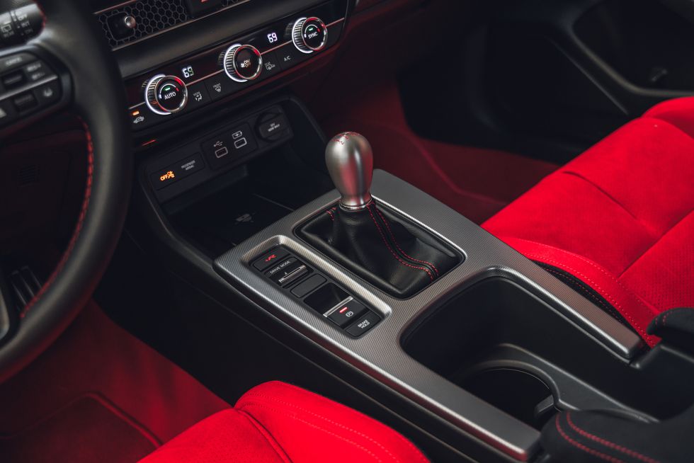Ghế ngồi thể thao và vô lăng được bọc da lộn giúp tăng độ bám với cơ thể con người khi vào cua. Màn hình kỹ thuật số kích thước 10,2 inch nằm sau vô lăng giống Civic RS, nhưng có thêm giao diện chế độ lái +R chỉ có trên Type R. Màn hình giải trí trung tâm kích thước 9 inch, có kết nối Apple CarPlay và Android Auto không dây và chế độ hiển thị Honda LogR. Hệ thống âm thanh 8 loa tiêu chuẩn thay vì 12 loa Bose như bản RS.