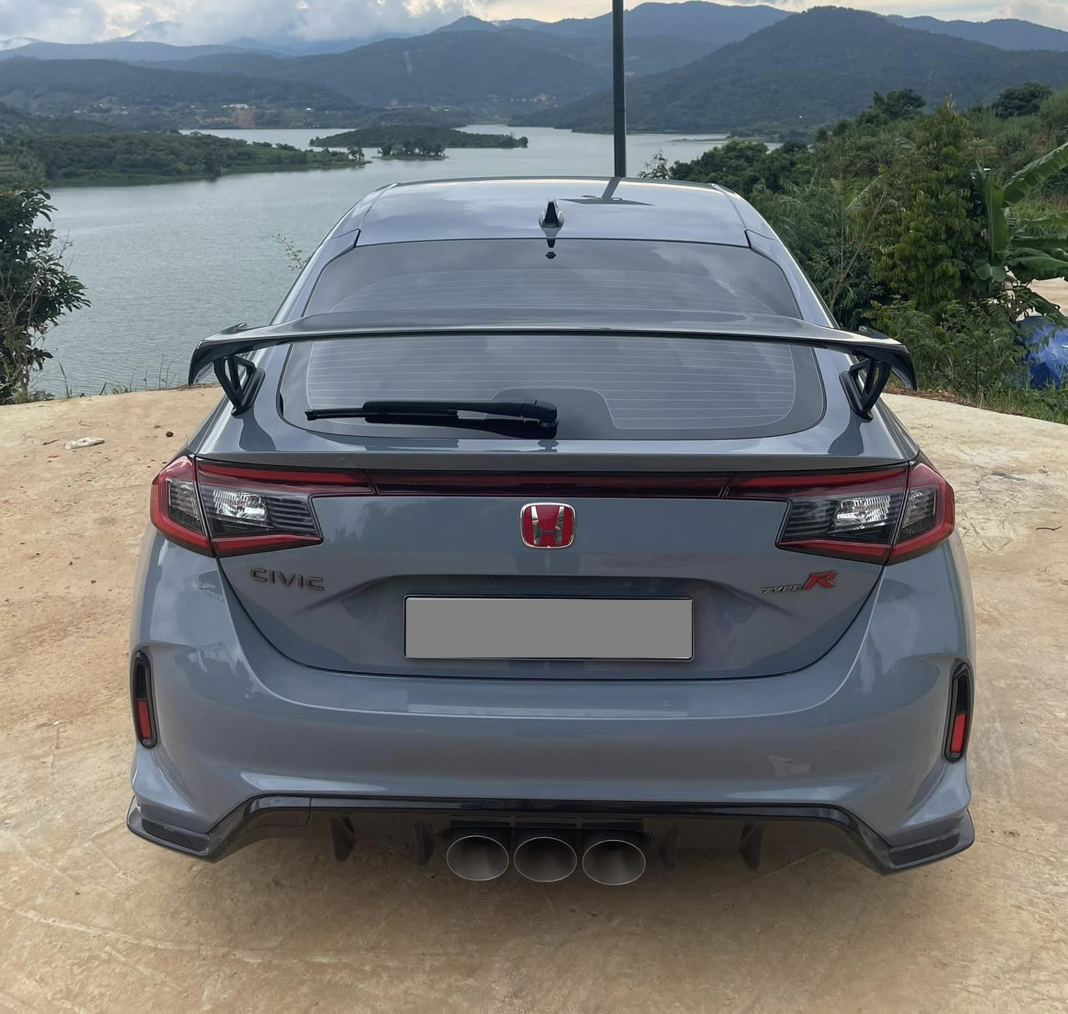 Xe mới lăn bánh chưa lâu nên màu sơn xám ngoại thất vẫn bóng bẩy. Honda Civic Type R chỉ được phân phối với 5 màu sắc là xám, đen, trắng, đỏ và xanh dương. Xe có những trang bị khá hiện đại và thể thao như đèn pha LED đi kèm dải đèn ban ngày, đèn hậu LED, cánh gió cỡ lớn cùng ống xả tam. Nguyên bản xe dùng mâm 19 inch, 5 chấu kép sơn đen nhám. Honda Civic Type R được nhập khẩu nguyên chiếc từ Nhật Bản.