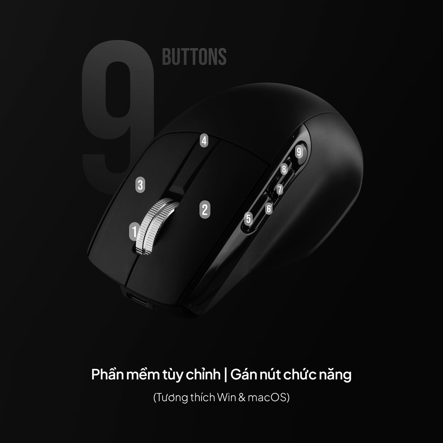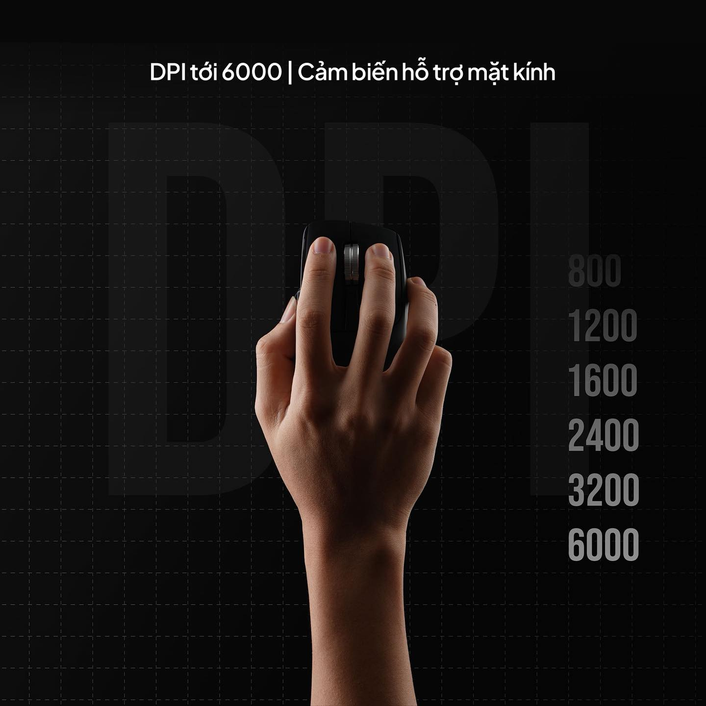 Về mặt phần cứng, thiết bị sở hữu cảm biến PixArt cao cấp, hỗ trợ tracking chính xác trên nhiều bề mặt, bao gồm cả mặt kính. Chuột cũng cho phép tùy chỉnh DPI từ 800 đến 6000, phù hợp cho cả các thao tác cần độ chính xác cao như thiết kế và chỉnh sửa nội dung, lẫn các tình huống cần tốc độ phản hồi nhanh trong khi chơi game.