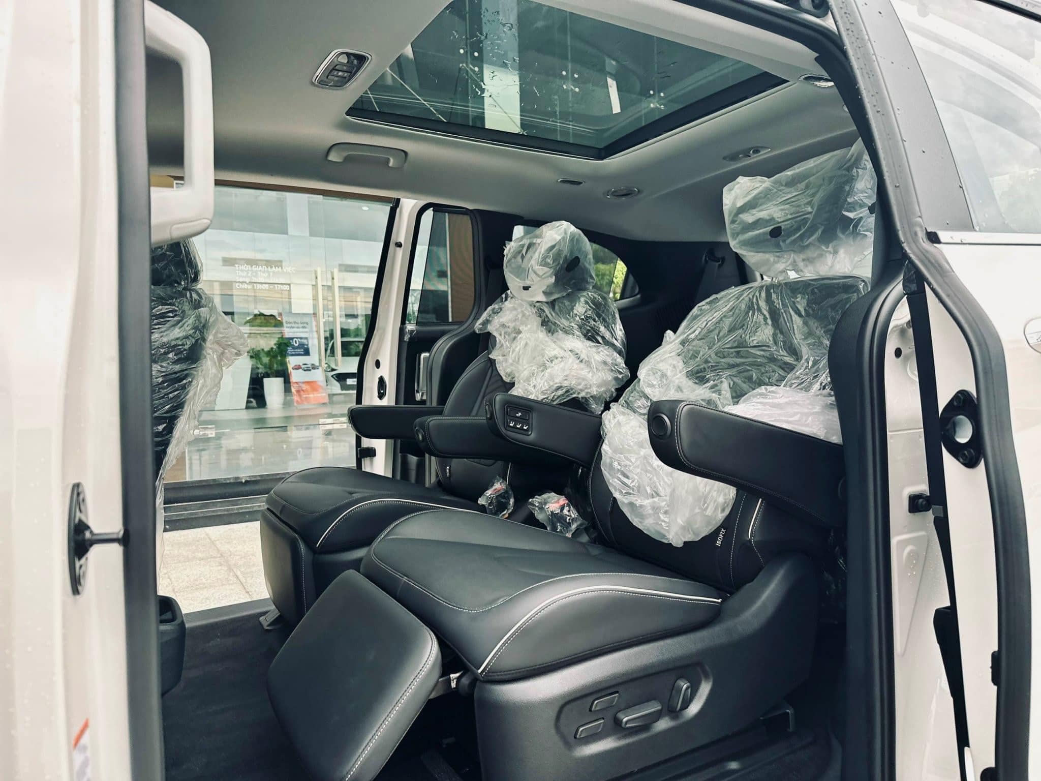 Bên trong khoang Hyundai Custin sở hữu nội thất 3 hàng ghế với 2 ghế thương gia ở giữa. Ngoài ra, xe còn có vô-lăng tích hợp phím chức năng/lẫy chuyển số thể thao, bảng đồng hồ kỹ thuật số, màn hình cảm ứng trung tâm 10,4 inch, hệ thống âm thanh 6 loa, điều hòa tự động...