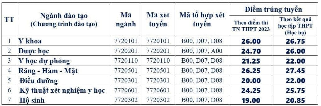 Điểm chuẩn Trường ĐH Y Dược Thái Nguyên năm 2023 cụ thể như sau: