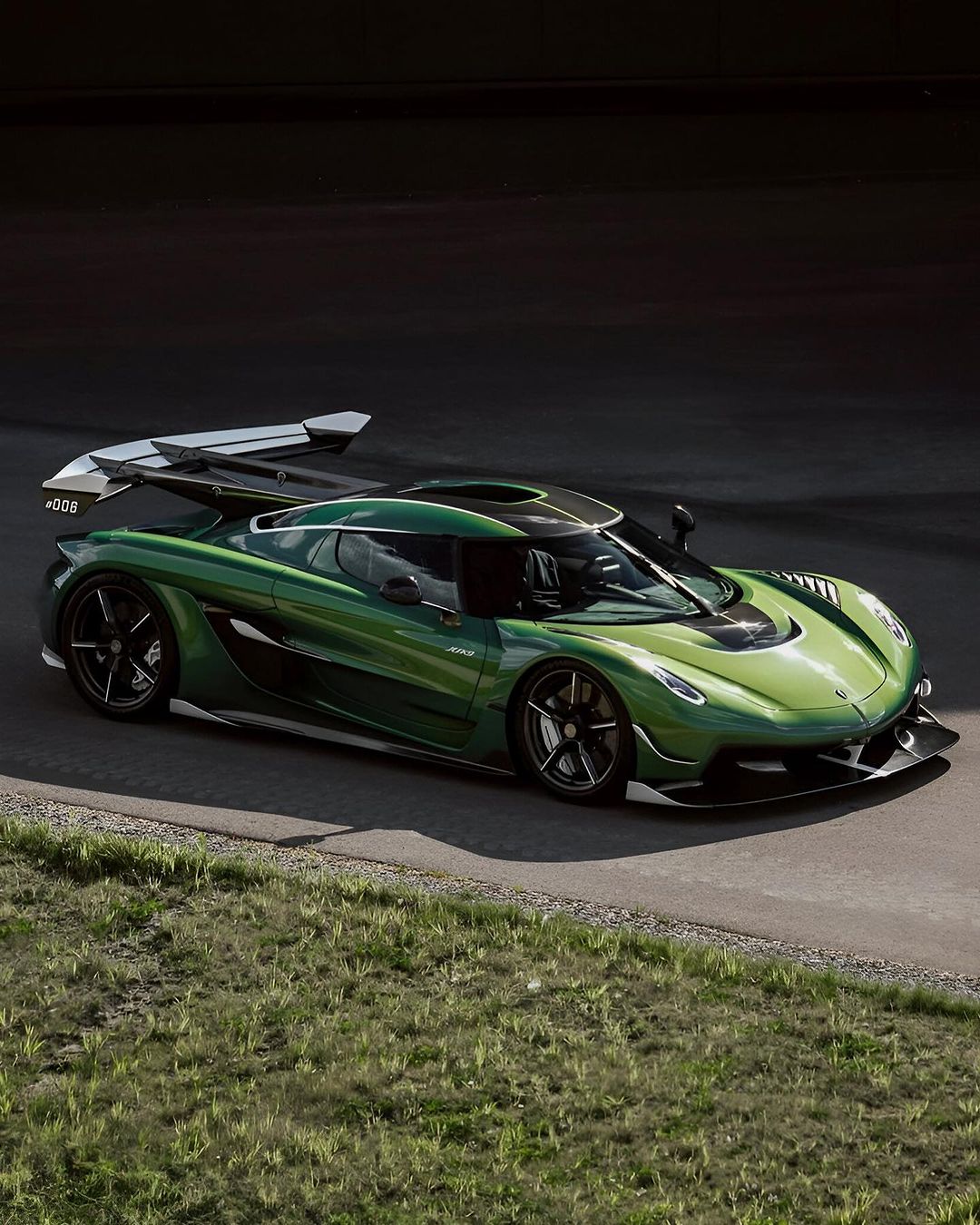 Chiếc Koenigsegg Jesko Plus đầu tiên trên thế giới dùng lớp sơn xanh lá ngọc trai rất nổi bật, tương phản là một số bề mặt sợi carbon thuần cùng một số ốp trắng Crystal White đi kèm. Mâm sợi carbon, cánh gió sợi carbon và số hiệu 006 (xe Jesko thứ 6 trên thị trường trong tổng 125 xe dự kiến sản xuất) là một số điểm đặc biệt khác bên ngoài xe.