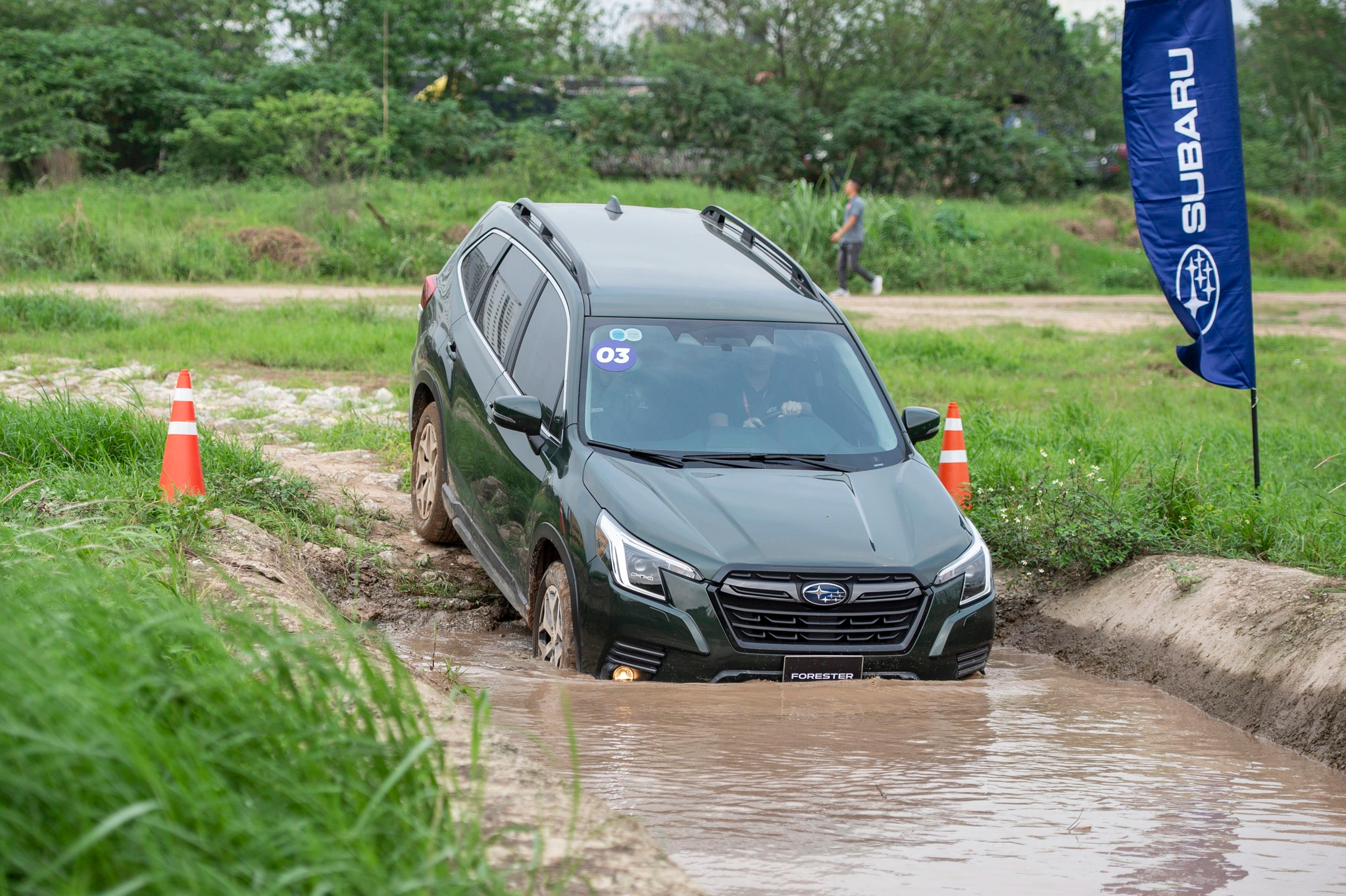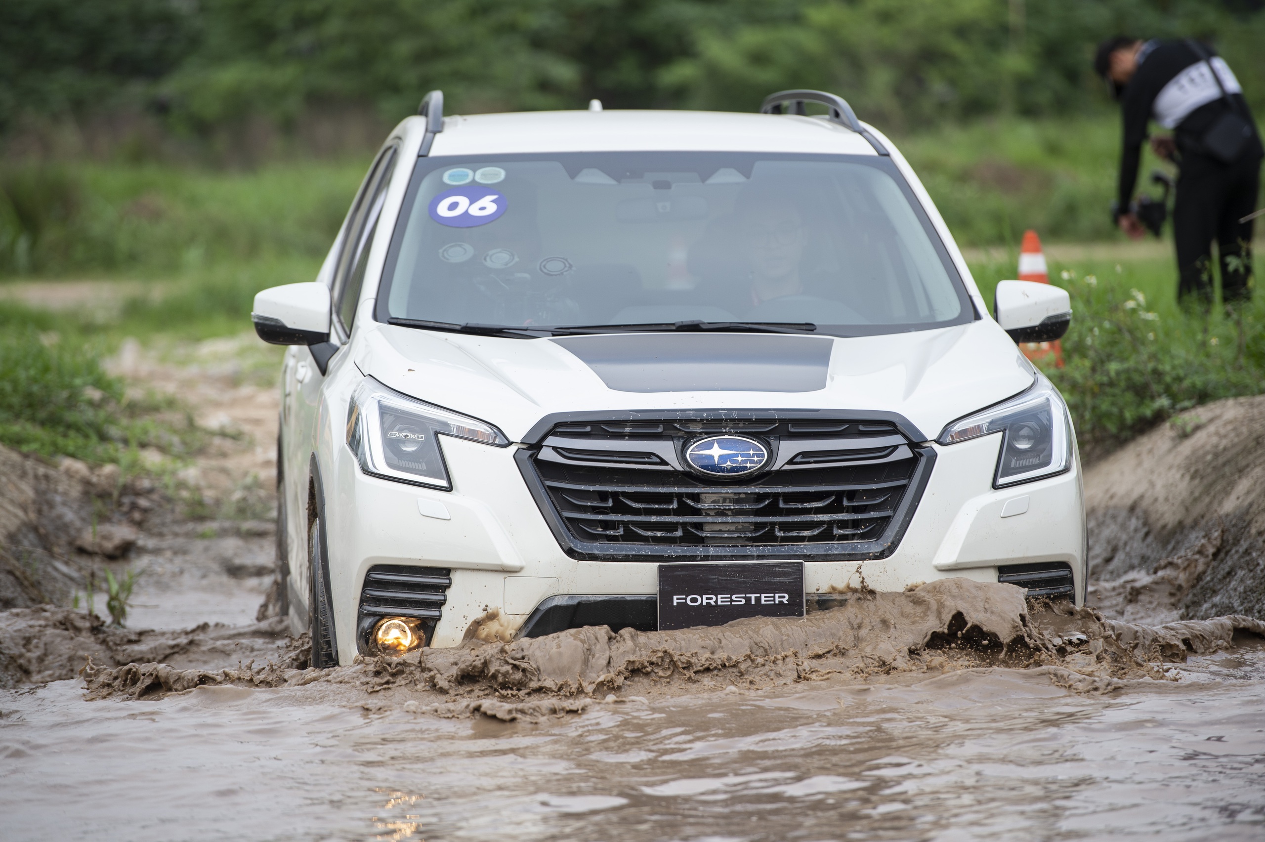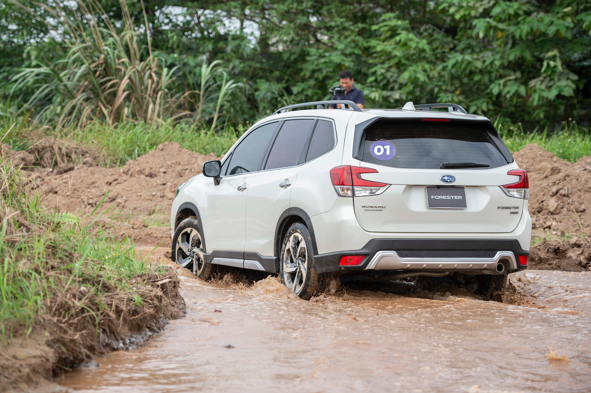 Lội nước là một tình huống thường gặp không chỉ khi đi off-road. Với đường ngập nước, việc đầu tiên luôn là xác định độ sâu của nước và phải đảm bảo khả năng lội nước của xe phù hợp. Nếu không đo được mực nước hoặc nước quá sâu so với thông số của xe thì phải chọn đường đi khác. Khi xuống nước, cần phải xuống từ từ. Khi xe đã ở dưới nước, phải duy trì ga liên tục nhưng không được đi nhanh, tránh nước bị đẩy lên cao, tràn vào cổ hút. Khi thoát ra khỏi vùng nước rồi cần chọn một nơi dốc, dừng xe khoảng 5-10 giây để nước dưới gầm và từ ống xả chui ra ngoài. Hố nước trong bài thử này có độ sâu 500 mm, bằng đúng khả năng lội nước của Forester