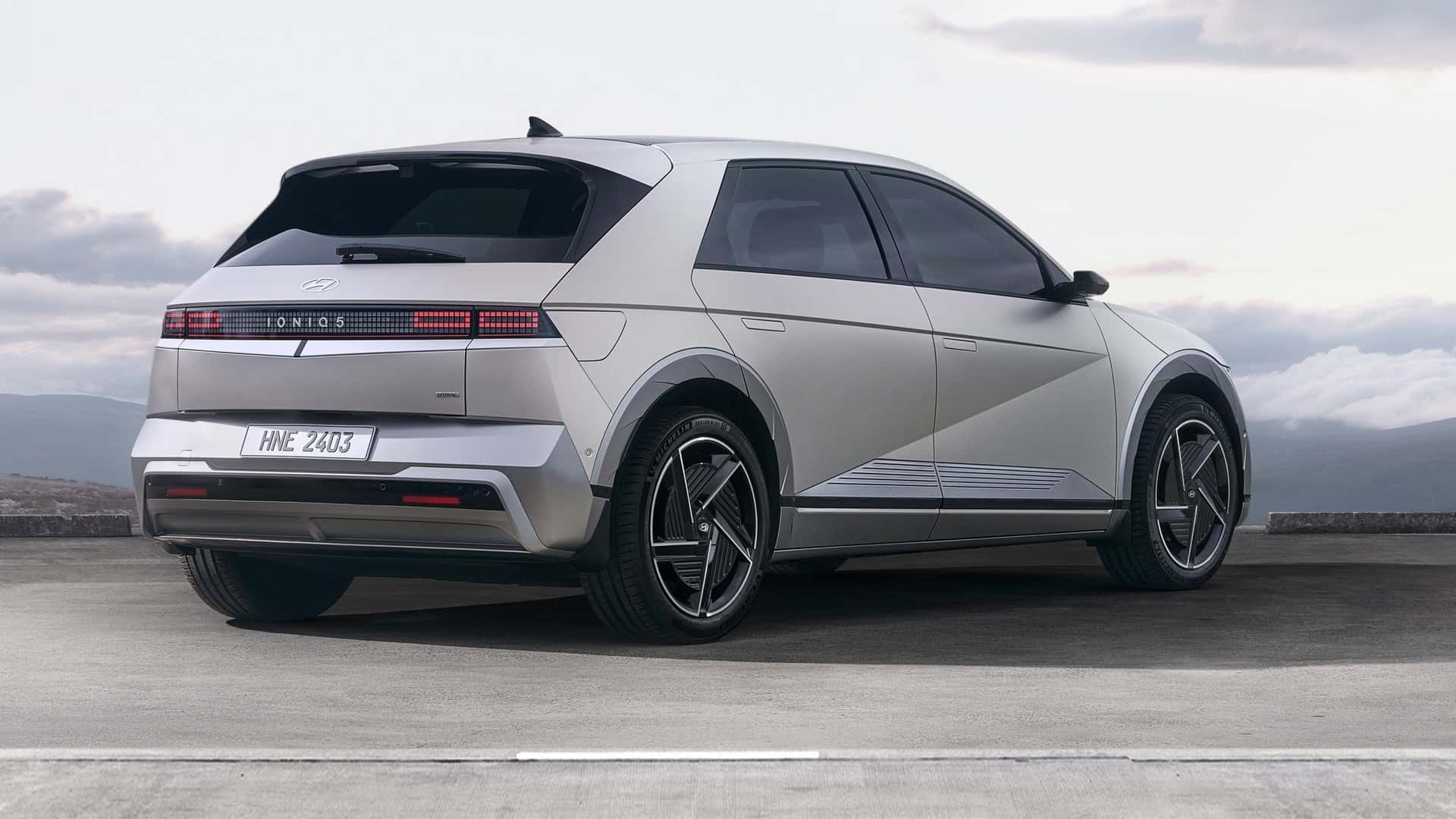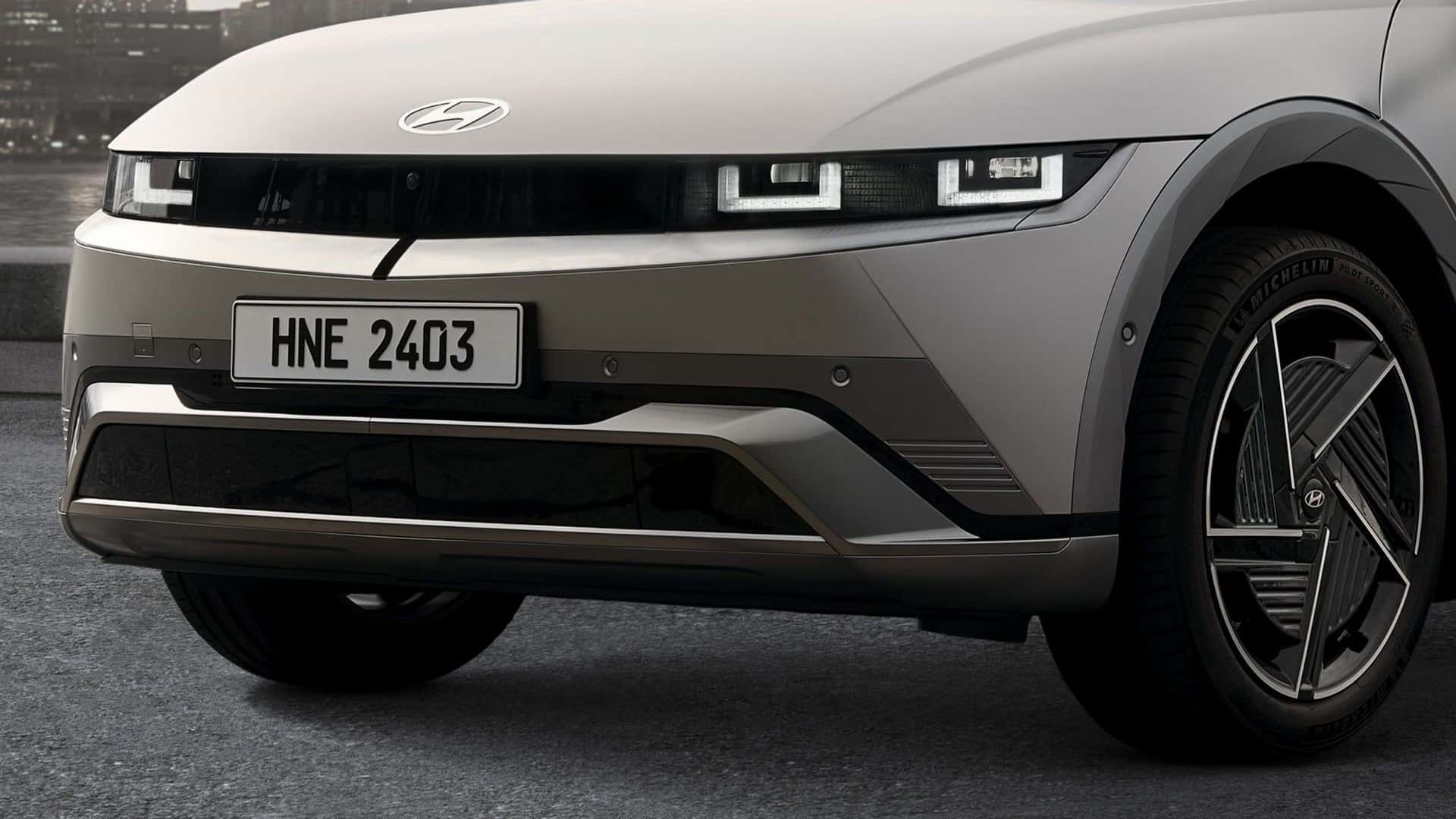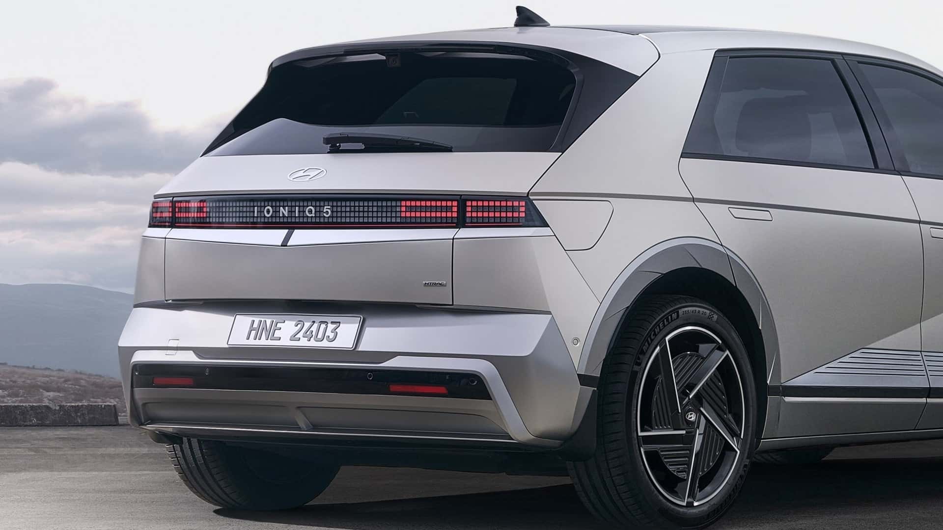 Về phần cấu hình tiêu chuẩn, phiên bản Hyundai Ioniq 5 2024 thường sử dụng tản nhiệt và cản trước cải tiến nhẹ. Chiều rộng, cao và chiều dài cơ sở xe giữ nguyên, tuy nhiên chiều dài tăng nhẹ 20 mm (tổng 4.655 x 1.890 x 1.650 DxRxC). Cánh gió sau được nới rộng 50 mm. Bên dưới một chút, gạt mưa cửa sổ sau xuất hiện giống trên bản hiệu suất cao N.