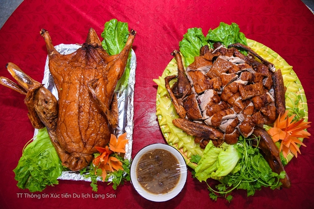 Nhiều du khách cả trong và ngoài nước dành lời khen cho hương vị món đặc sản thịt vịt quay Lạng Sơn (Ảnh TT Thông tin Xúc tiến Du lịch Lạng Sơn)